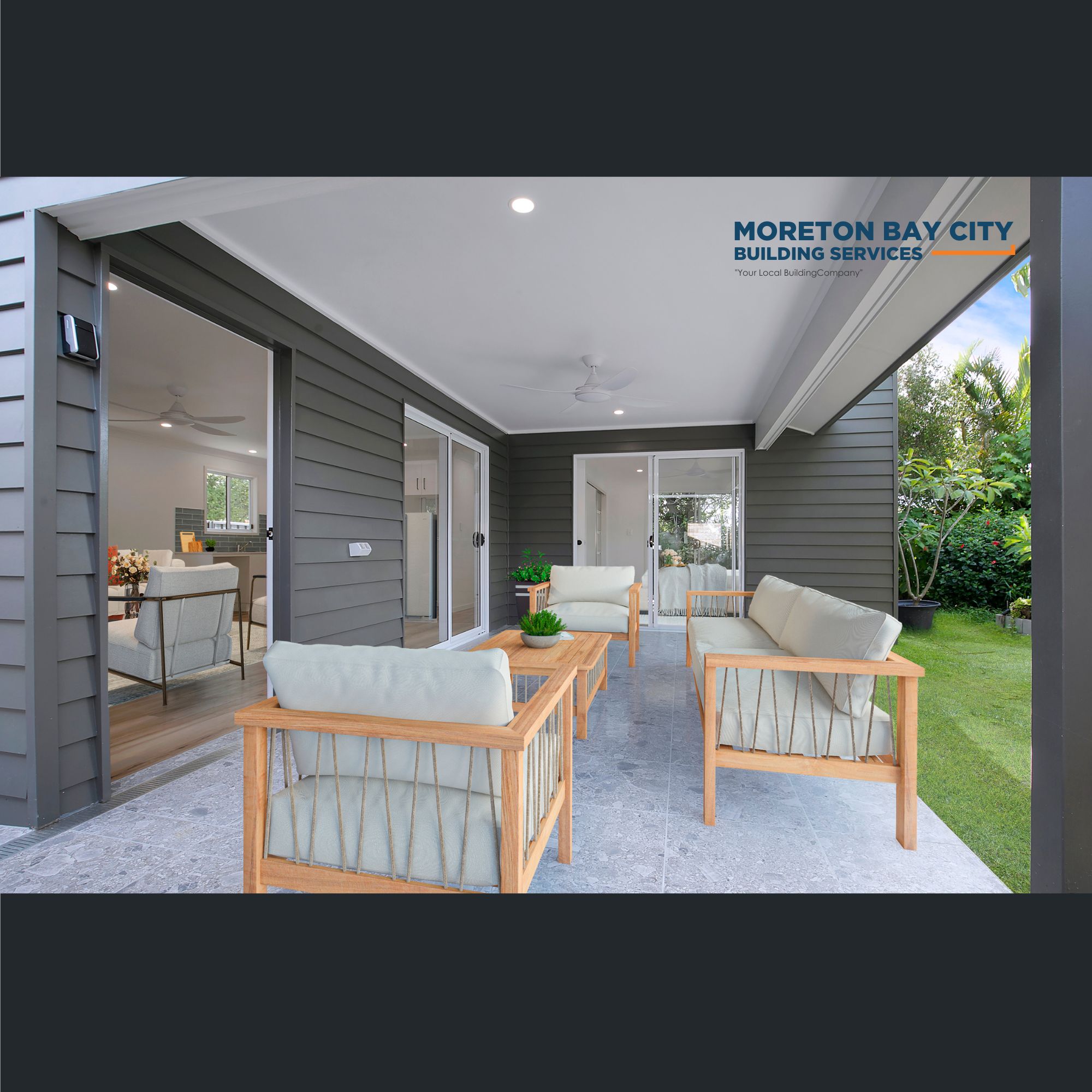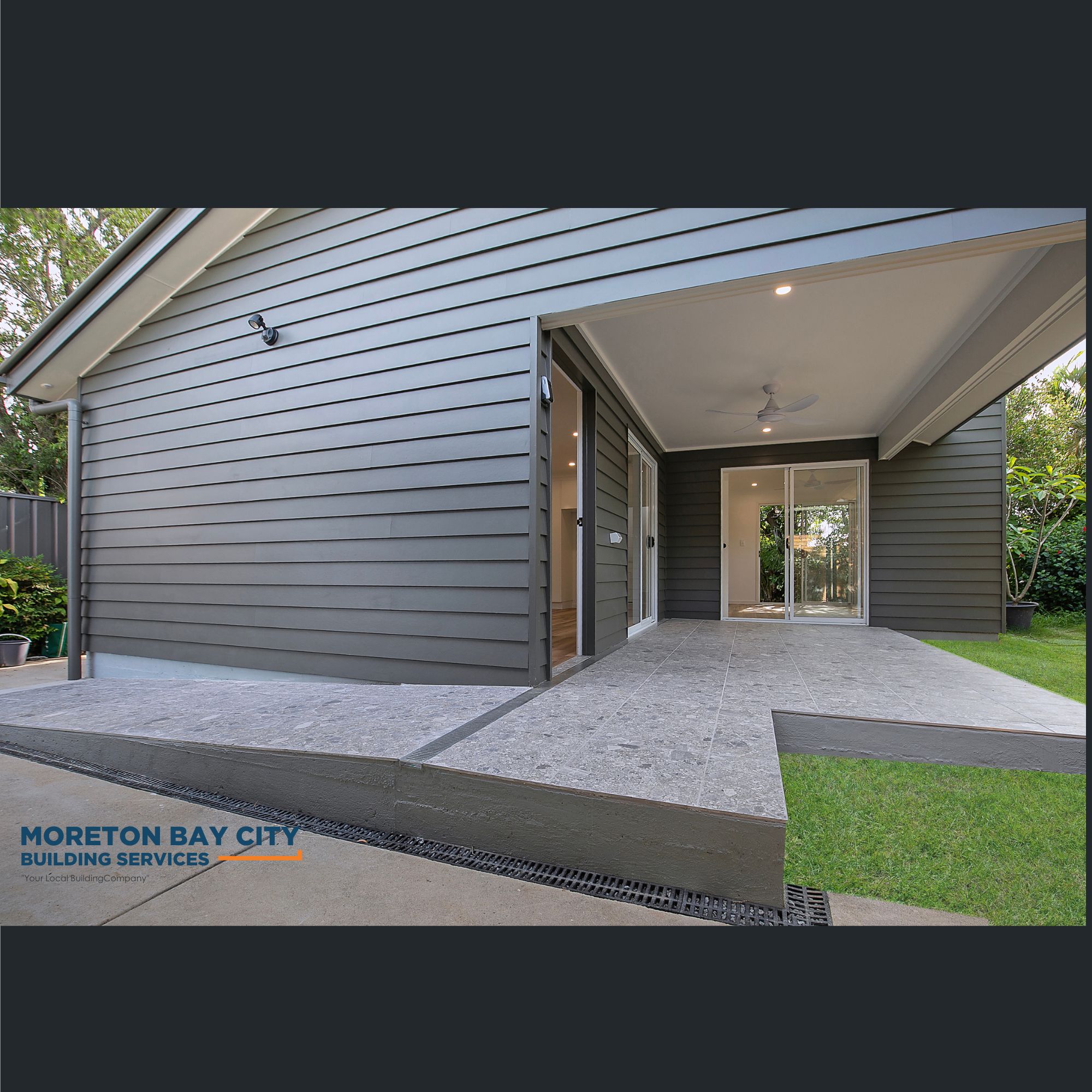 - exterior alfresco area under roofline with accessible ramp entry